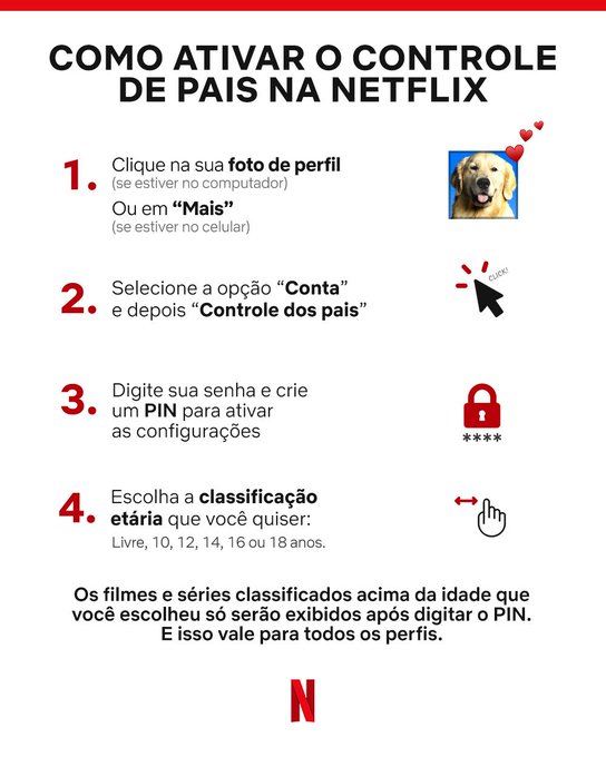 Também neste sábado, o serviço de streaming compartilhou nas redes sociais um tutorial chamado Como ativar o controle de pais na Netflix. Veja abaixo: